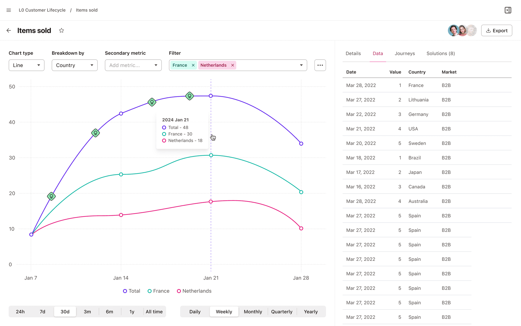 Theydo is introducing dimensions - so metrics now are not just time series, but has additional dimensions. This opens a lot of possibilities to slice, group, filter and analyze data. But it also makes UI pretty complex, especially for not so data savvy designers, which are part of our core audience.